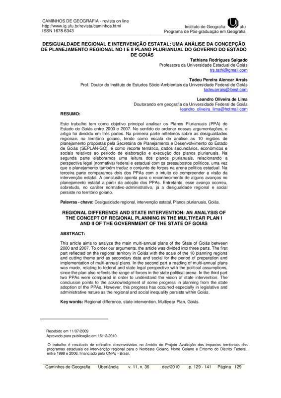 DESIGUALDADE REGIONAL E INTERVENÇÃO ESTATAL: UMA ANÁLISE DA CONCEPÇÃO DE PLANEJAMENTO REGIONAL NO I E II PLANO PLURIANUAL DO GOVERNO DO ESTADO DE GOIÁS