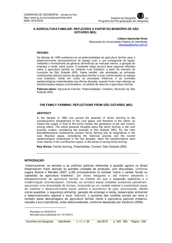 A AGRICULTURA FAMILIAR: reflexões a partir do município de São Gotardo (MG)