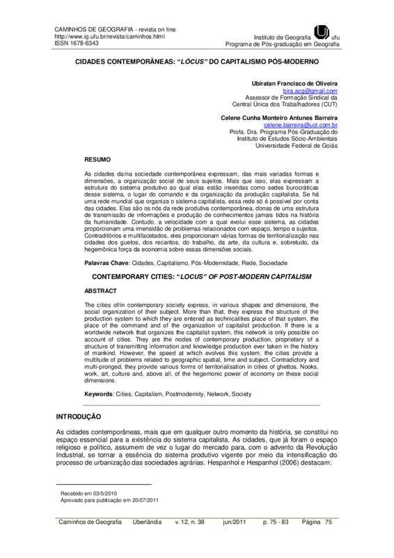 CIDADES CONTEMPORÂNEAS: "LÓCUS" DO CAPITALISMO PÓS-MODERNO