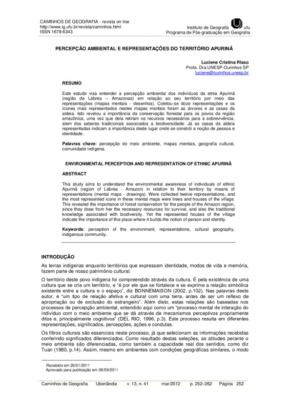 PERCEPÇÃO AMBIENTAL E REPRESENTAÇÕES DA ETNIA APURINÃ