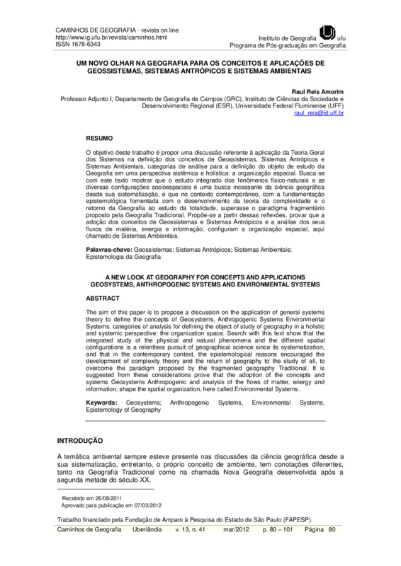 UM NOVO OLHAR NA GEOGRAFIA PARA OS CONCEITOS E APLICAÇÕES DE GEOSSISTEMAS, SISTEMAS ANTRÓPICOS E SISTEMAS AMBIENTAIS