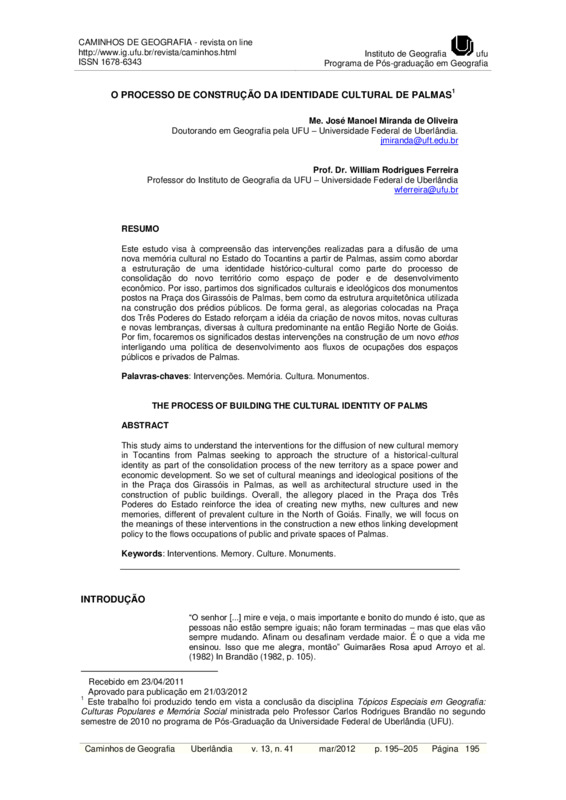 O PROCESSO DE CONSTRUÇÃO DA IDENTIDADE CULTURAL DE PALMAS