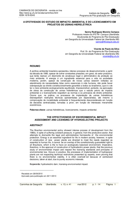 A EFETIVIDADE DO ESTUDO DE IMPACTO AMBIENTAL E DO LICENCIAMENTO EM PROJETOS DE USINAS HIDRELÉTRICA
