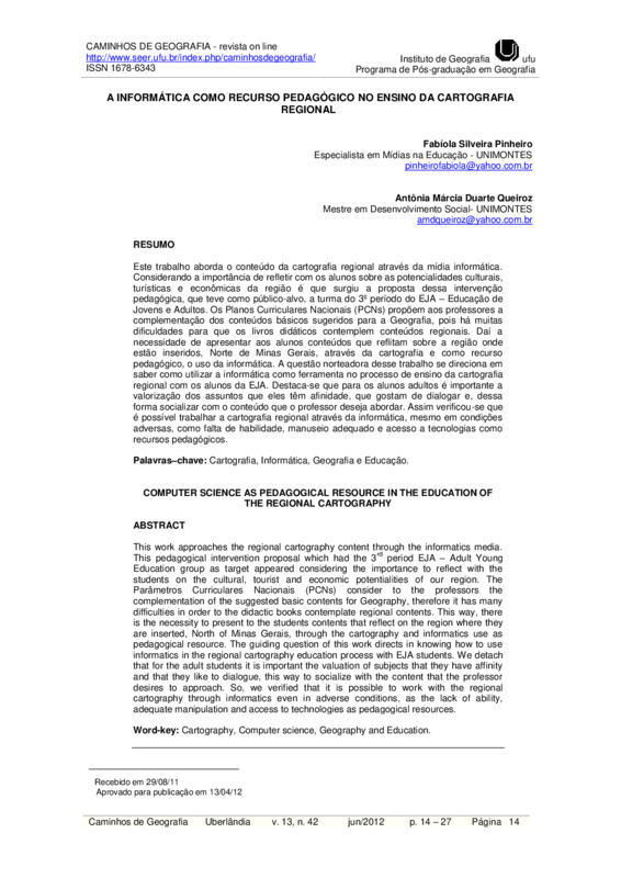 A INFORMÁTICA COMO RECURSO PEDAGÓGICO NO ENSINO DA CARTOGRAFIA REGIONAL