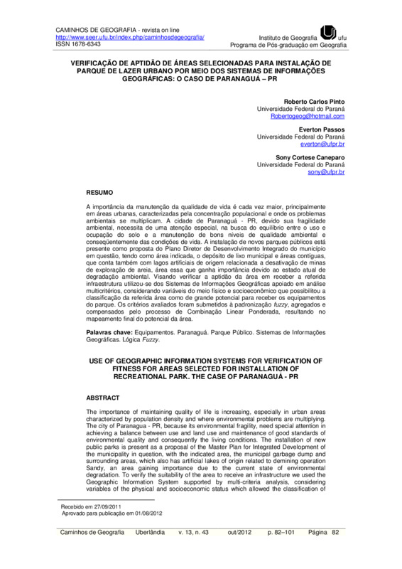 VERIFICAÇÃO DE APTIDÃO DE ÁREAS SELECIONADAS PARA INSTALAÇÃO DE PARQUE DE LAZER URBANO POR MEIO DOS SISTEMAS DE INFORMAÇÕES GEOGRÁFICAS: O CASO DE PARANAGUÁ – PR