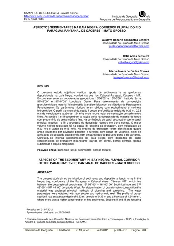 ASPECTOS SEDIMENTARES NA BAÍA NEGRA, CORREDOR FLUVIAL DO RIO PARAGUAI, PANTANAL DE CÁCERES – MATO GROSSO