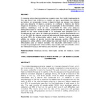 DESTINO FINAL DOS RESÍDUOS SÓLIDOS NA CIDADE DE MONTE ALEGRE DE MINAS -MG