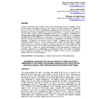 ARQUEOLOGIA HISTÓRICA NA REGIÃO DA PONTA DO POÇO, MUNICÍPIO DE PONTAL DO PARANÁ, PARANÁ