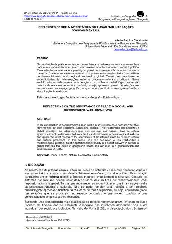 REFLEXÕES SOBRE A IMPORTÂNCIA DO LUGAR NAS INTERAÇÕES SOCIOAMBIENTAIS