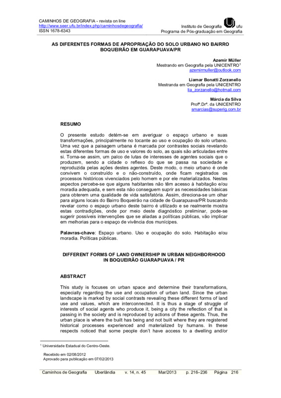 AS DIFERENTES FORMAS DE APROPRIAÇÃO DO SOLO URBANO NO BAIRRO BOQUEIRÃO EM GUARAPUAVA/PR