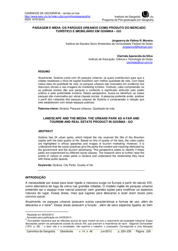 PAISAGEM E MÍDIA: OS PARQUES URBANOS COMO PRODUTO DO MERCADO TURÍSTICO E IMOBILIÁRIO EM GOIÂNIA – GO