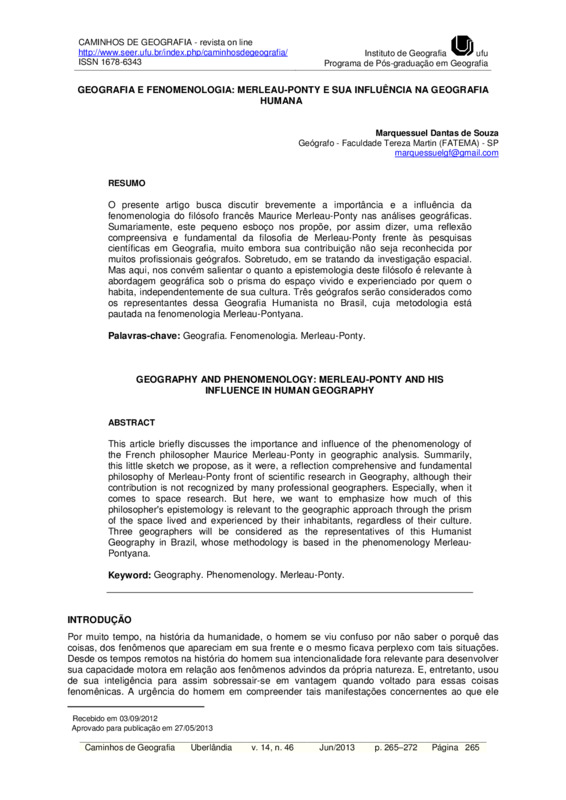 GEOGRAFIA E FENOMENOLOGIA: MERLEAU-PONTY E SUA INFLUÊNCIA NA GEOGRAFIA HUMANA