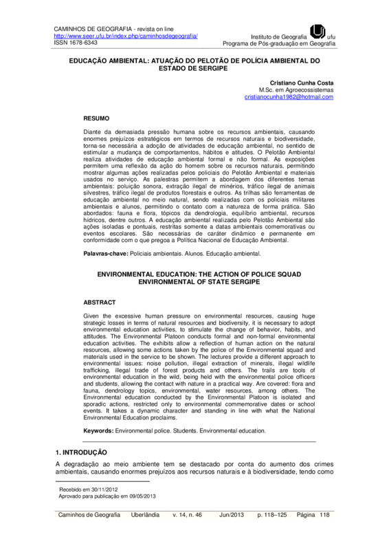 EDUCAÇÃO AMBIENTAL: ATUAÇÃO DO PELOTÃO DE POLÍCIA AMBIENTAL DO ESTADO DE SERGIPE