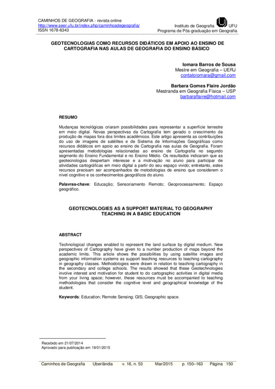 GEOTECNOLOGIAS COMO RECURSOS DIDÁTICOS EM APOIO AO ENSINO DE CARTOGRAFIA NAS AULAS DE GEOGRAFIA DO ENSINO BÁSICO