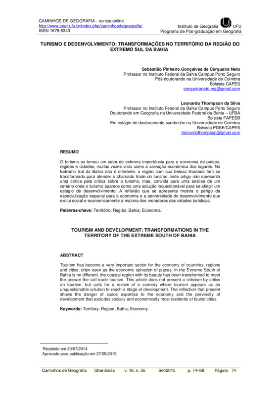 TURISMO E DESENVOLVIMENTO: TRANSFORMAÇÕES NO TERRITÓRIO DA REGIÃO DO EXTREMO SUL DA BAHIA