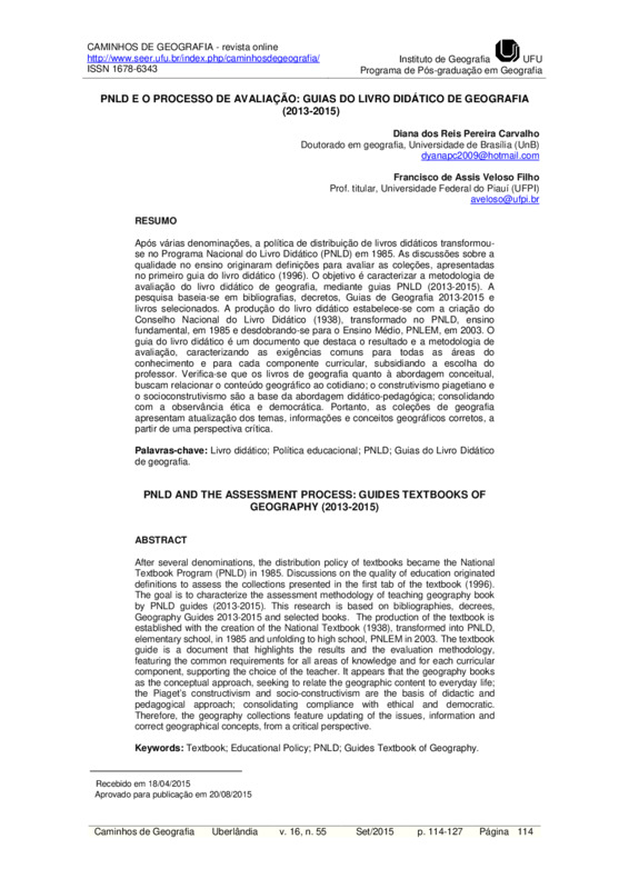 PNLD E O PROCESSO DE AVALIAÇÃO: GUIAS DO LIVRO DIDÁTICO DE GEOGRAFIA (2013-2015)