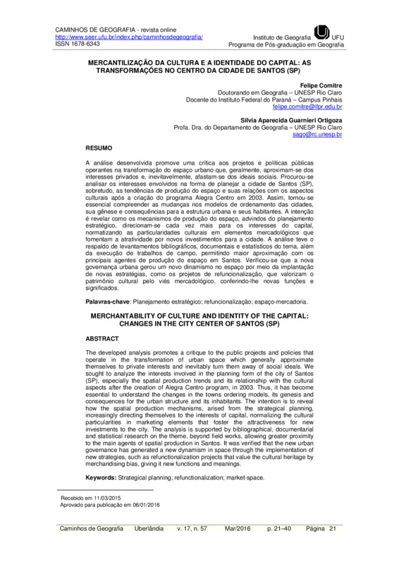MERCANTILIZAÇÃO DA CULTURA E A IDENTIDADE DO CAPITAL: AS TRANSFORMAÇÕES NO CENTRO DA CIDADE DE SANTOS (SP)