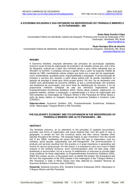 A ECONOMIA SOLIDÁRIA E SUA EXPANSÃO NA MESORREGIÃO DO TRIÂNGULO MINEIRO E ALTO PARANAÍBA - MG