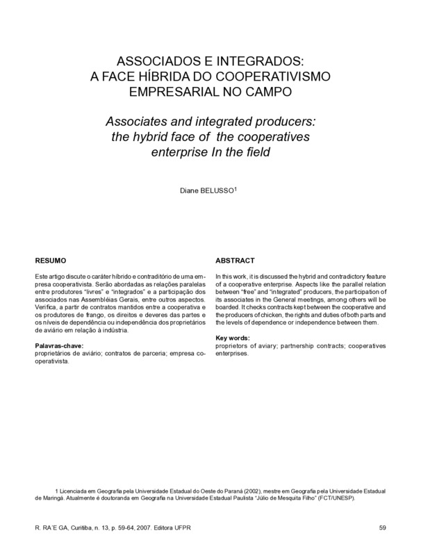 ASSOCIADOS E INTEGRADOS: A FACE HÍBRIDA DO COOPERATIVISMO EMPRESARIAL NO CAMPO