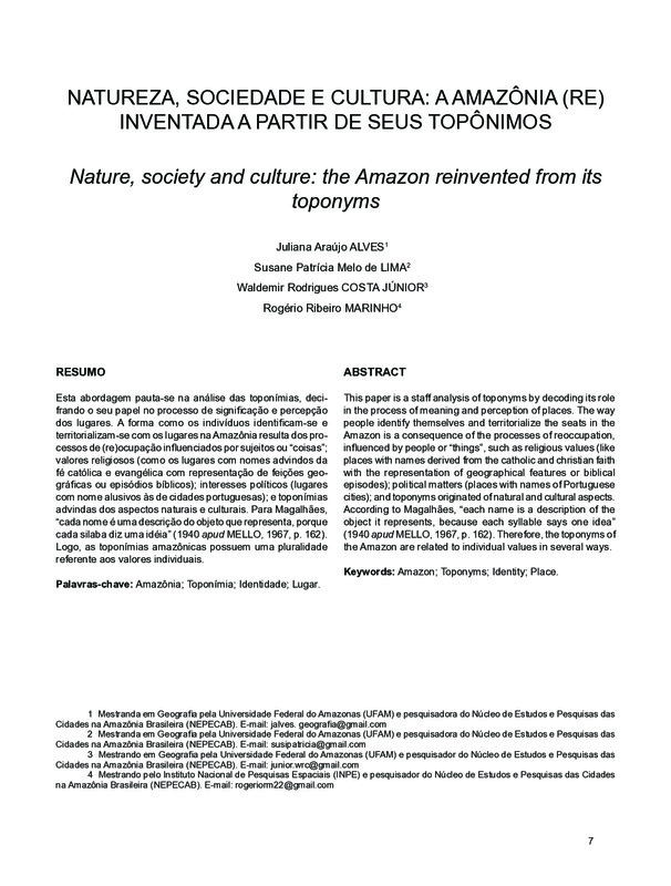 Natureza, sociedade e cultura: a Amazônia (re)inventada a partir de seus topônimos