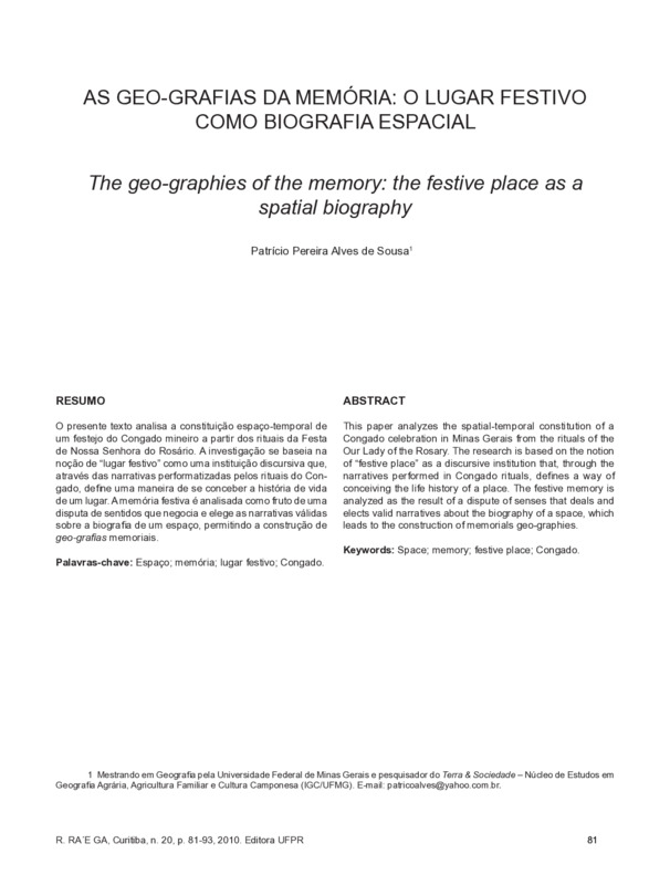 AS GEO-GRAFIAS DA MEMÓRIA: O LUGAR FESTIVO COMO BIOGRAFIA ESPACIAL
