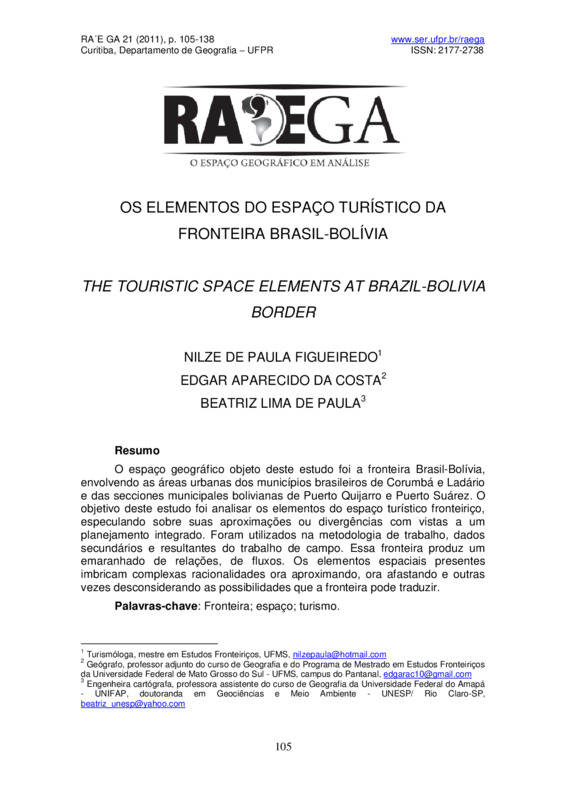 OS ELEMENTOS DO ESPAÇO TURÍSTICO DA FRONTEIRA BRASIL-BOLÍVIA