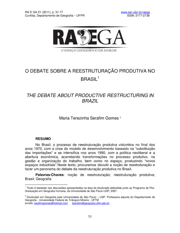 O DEBATE SOBRE A REESTRUTURAÇÃO PRODUTIVA NO BRASIL