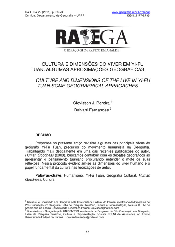 CULTURA E DIMENSÕES DO VIVER EM YI-FU TUAN: ALGUMAS APROXIMAÇÕES GEOGRÁFICAS