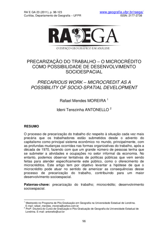 PRECARIZAÇÃO DO TRABALHO – O MICROCRÉDITO COMO POSSIBILIDADE DE DESENVOLVIMENTO SOCIOESPACIAL