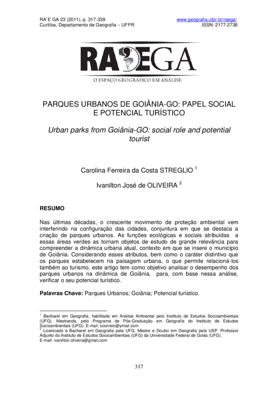 PARQUES URBANOS DE GOIÂNIA-GO: PAPEL SOCIAL E POTENCIAL TURÍSTICO