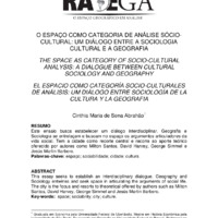 O ESPAÇO COMO CATEGORIA DE ANÁLISE SÓCIOCULTURAL: UM DIÁLOGO ENTRE A SOCIOLOGIA CULTURAL E A GEOGRAFIA