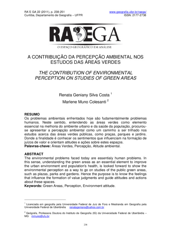 A CONTRIBUIÇÃO DA PERCEPÇÃO AMBIENTAL NOS ESTUDOS DAS ÁREAS VERDES