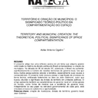 TERRITÓRIO E CRIAÇÃO DE MUNICÍPIOS: O SIGNIFICADO TEÓRICO-POLÍTICO DA COMPARTIMENTAÇÃO DO ESPAÇO