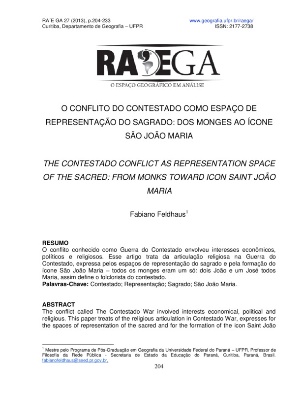 O CONFLITO DO CONTESTADO COMO ESPAÇO DE REPRESENTAÇÃO DO SAGRADO