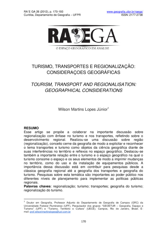 TURISMO, TRANSPORTES E REGIONALIZAÇÃO: CONSIDERAÇOES GEOGRÁFICAS