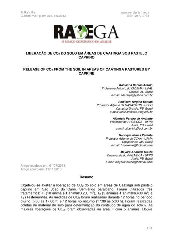 LIBERAÇÃO DE CO2 DO SOLO EM ÁREAS DE CAATINGA SOB PASTEJO CAPRINO