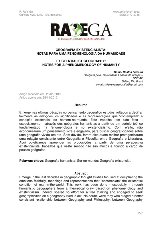 GEOGRAFIA EXISTENCIALISTA: NOTAS PARA UMA FENOMENOLOGIA DA HUMANIDADE