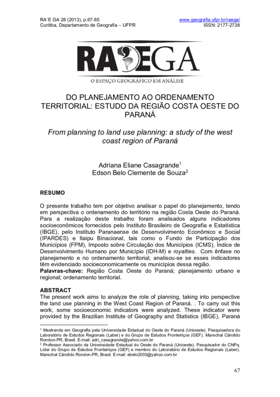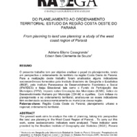 Do Planejamento ao Ordenamento Territorial: Estudo da Região Costa Oeste do Paraná