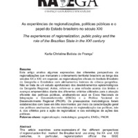 As experiências de regionalizações, políticas públicas e o papel do Estado brasileiro no século XXI