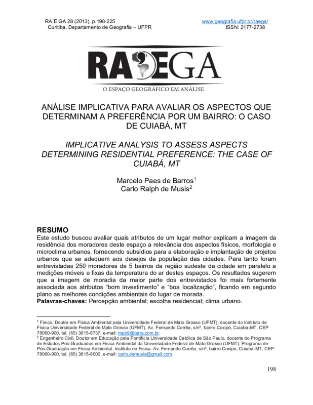 Análise Implicativa para Avaliar os Aspectos que Determinam a Preferência por Um Bairro: O Caso de Cuiabá, MT