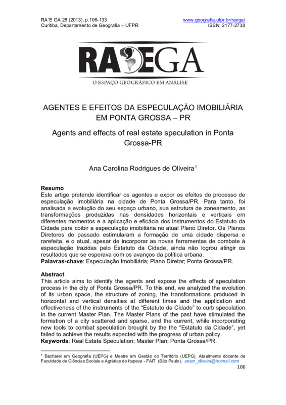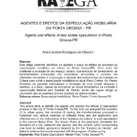 Agentes e Efeitos da Especulação Imobiliária em Ponta Grossa – Pr