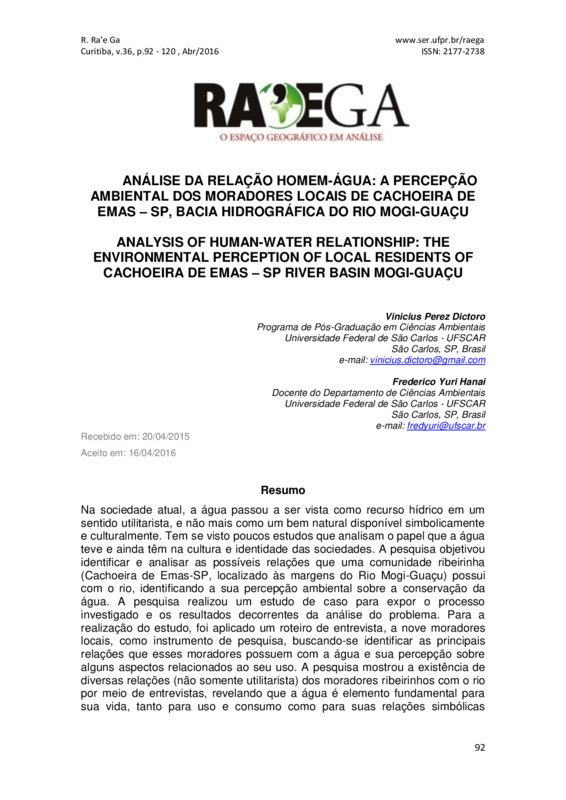 ANÁLISE DA RELAÇÃO HOMEM-ÁGUA: A PERCEPÇÃO AMBIENTAL DOS MORADORES LOCAIS DE CACHOEIRA DE EMAS – SP, BACIA HIDROGRÁFICA DO RIO MOGI-GUAÇU.