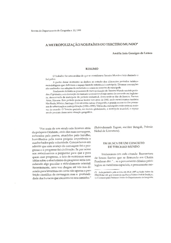 - A METROPOLIZAÇÃO NOS PAÍSES DO TERCEIRO MUNDO