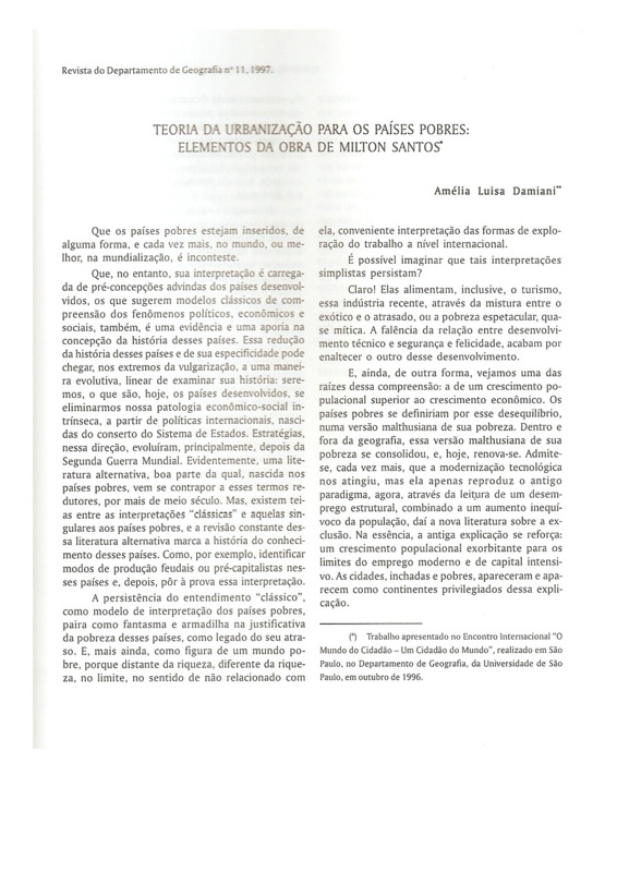 - TEORIA DA URBANIZAÇÃO PARA OS PAÍSES POBRES: ELEMENTOS DA OBRA DE MILTON SANTOS