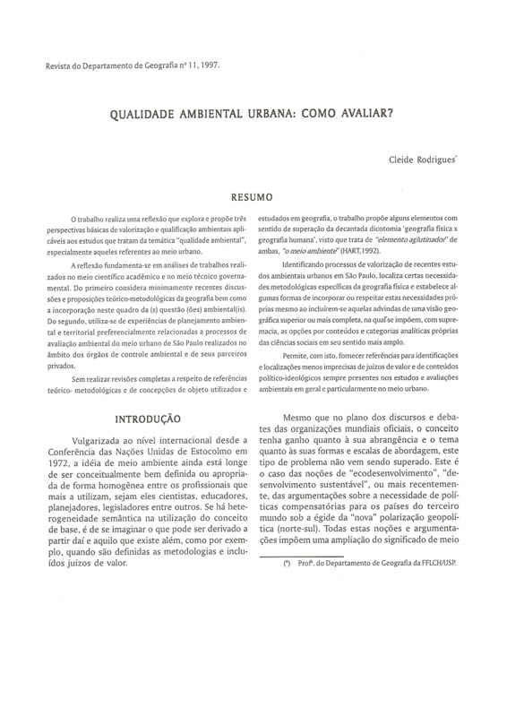 - QUALIDADE AMBIENTAL URBANA: COMO AVALIAR?