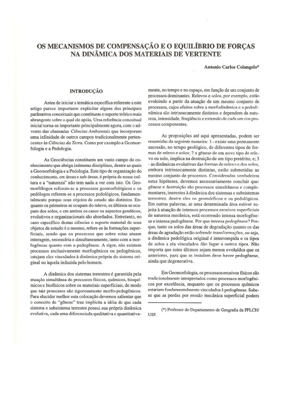 OS MECANISMOS DE COMPENSAÇÃO E O EQUILÍBRIO DE FORÇAS NA DINÂMICA DOS MATERIAIS DE VERTENTE