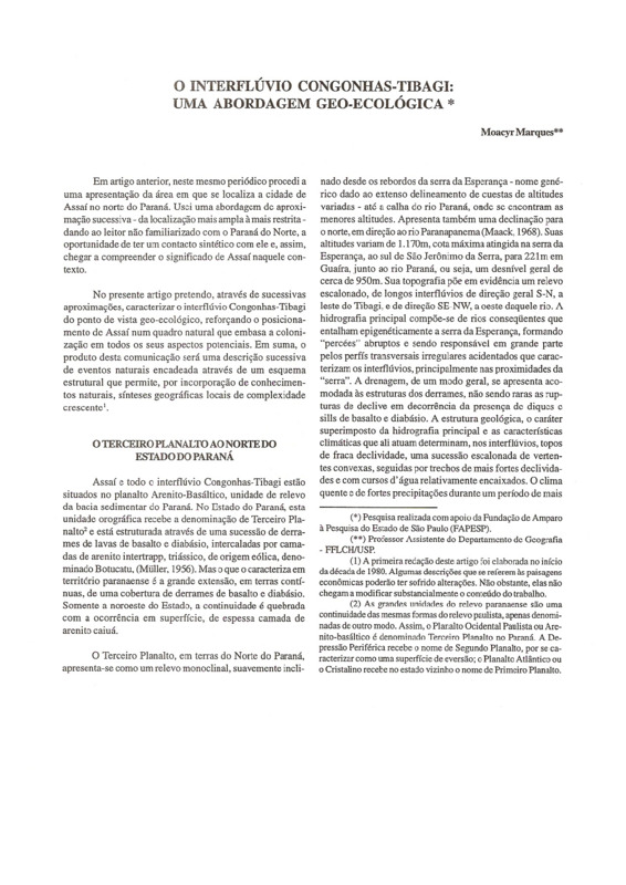 O INTERFLÚVIO CONGONHAS-TIBAGI: UMA ABORDAGEM GEO-ECOLÓGICA