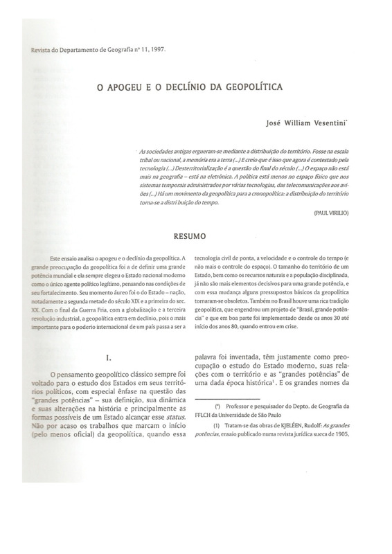 O APOGEU E O DECLÍNIO DA GEOPOLÍTICA