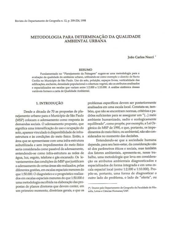 - METODOLOGIA PARA DETERMINAÇÃO DA QUALIDADE AMBIENTAL URBANA