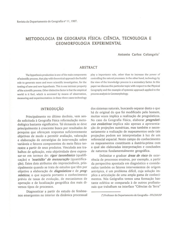 - METODOLOGIA EM GEOGRAFIA FÍSICA: CIÊNCIA, TECNOLOGIA E GEOMORFOLOGIA EXPERIMENTAL